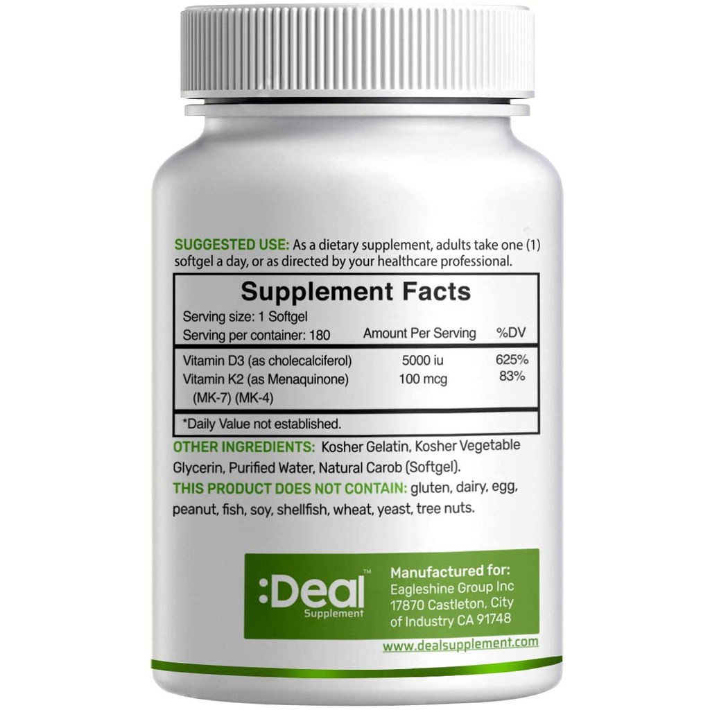 Deal Vitamin D3 5000iu K2 100mcg Mk4 Mk 7 Isi 180 Softgel Shopee Indonesia